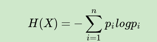 其中n代表X的n种不同的离散取值。而P_i代表了X取值为i的概率,log为以2或者e为底的对数。举个例子,比如X有2个可能的取值,而这两个取值各为1/2时X的熵最大,此时X具有最大的不确定性。
