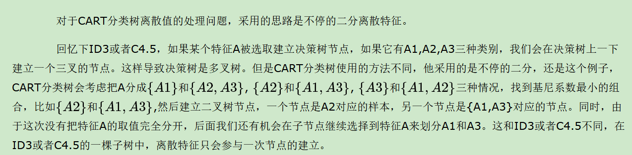不同于ID3和C4.5,CART算法使用基尼系数来代替信息增益和信息增益率,基尼系数代表了模型的不纯度,基尼系数越小,则不纯度越低,特征越好。