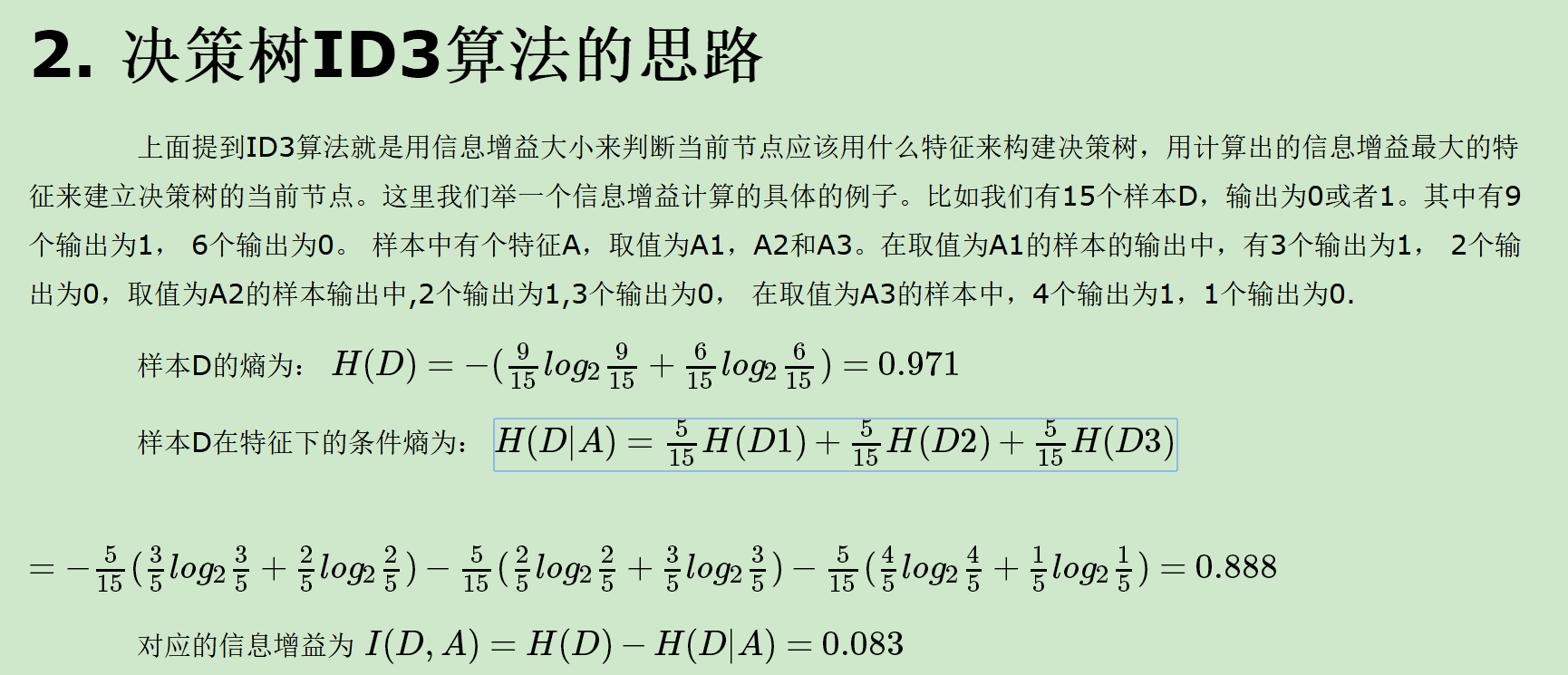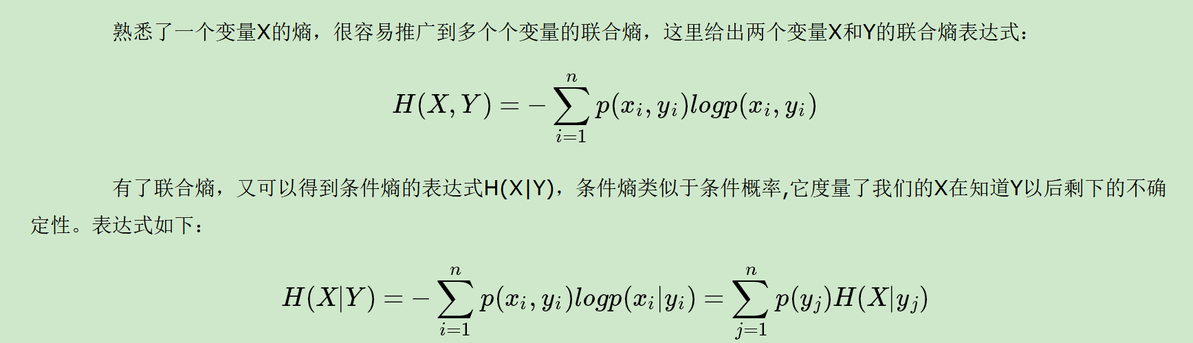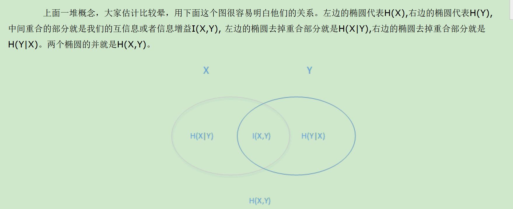 H(X)度量了X的不确定性,条件熵H(X|Y)度量了我们在知道Y以后X剩下的不确定性,H(X)-H(X|Y) 度量了X在知道Y以后不确定性减少程度,这个度量我们在信息论中称为互信息,记为I(X,Y) ,在决策树ID3算法中叫做信息增益。信息增益大,则越适合用来分类。
